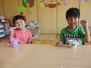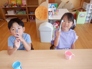 給食後は、歯ブラシチェック!