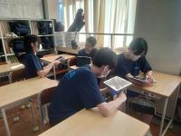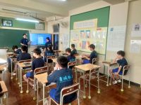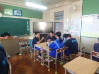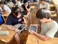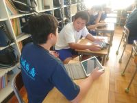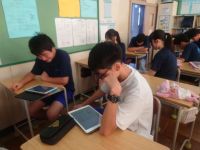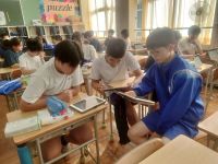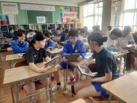 本校では朝にNIE活動(新聞を使った教育活動)を行っています。本日は、各自新聞を読んだ後に、ペアや
