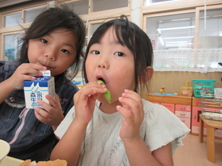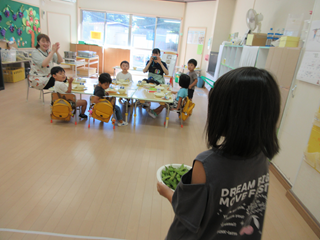 もいだ枝豆は園長先生がおいしく茹でてくれました!