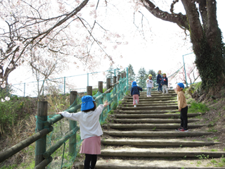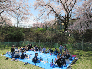 第一幼稚園の桜も満開になり、みんなでお花見をしました