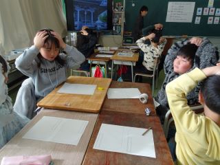 3年生の皆さん、必要な色や形を使いながら松島のい