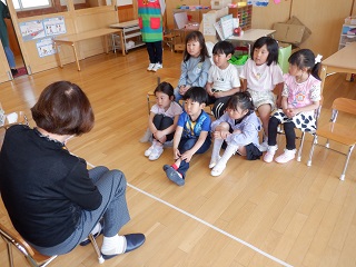 今日は、おはなしあっぷるさんが楽しい絵本を読んでくれました