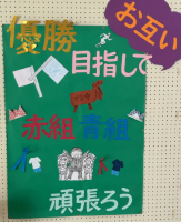 今週末の運動会に向けての練習が、赤組・青組ともに熱を帯びてきました。あいにくの雨模様のため、午