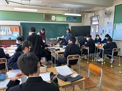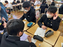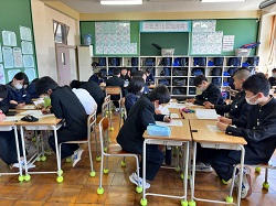 2年生では明日1年生を校舎案内するための準備をしていました。