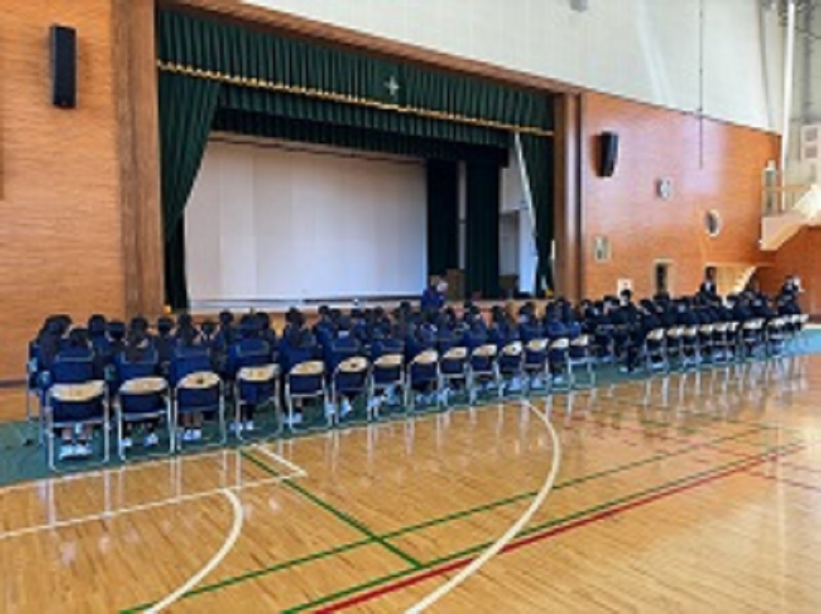 1年生は体育館で学年集会でこれからの生活等の話がありました。聞く姿勢、視線ともにとてもよかったですよ。