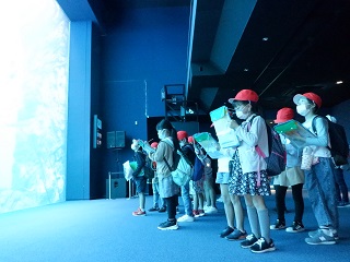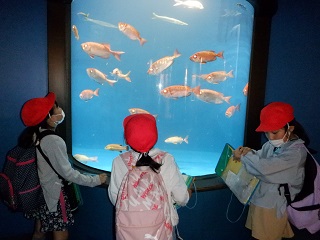 ▲水族館でもメモすることを忘れずに熱心な3年生です!!