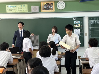 3年生を対象に、租税教室を行いました。塩釜税務署から2名の講師をお招きし、税の仕組みや必要性について学びました。1億円のレプリカやクイズに挑戦するなど積極的に取り組む松中生の姿が印象的でした。