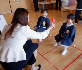 お部屋でのお集まりでは、お歌やおもちゃに興味津々でした