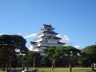 ▲天気に恵まれた青空の下,美しい鶴ヶ城です!! 見事ですネ!!