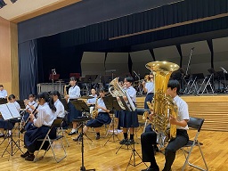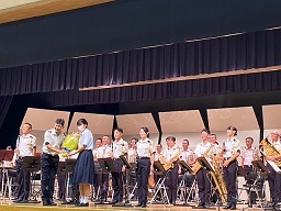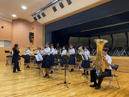 9月10日(日)松島ふれあいコンサートに本校吹奏楽部が参加しました。陸上自衛隊第6音楽隊の皆さんが演奏する前の時間をいただき2曲披露しました。会場の皆さんから、温かい拍手をいただきました。