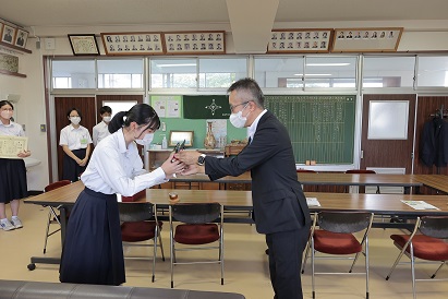 9月9日(金)義務教育課より賞状と記念の盾をいただきました。