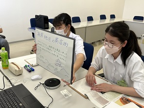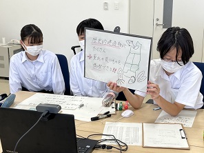 自己紹介、他己紹介の後は研修を行いました。オンラインで、自分の町の良さを相手にわかりやすく伝えることは簡単そうで難しいようでした。本校生徒は、松島町の魅力を一生懸命伝え、にかほ市の生徒からは、ぜひ一度松島町に訪れてみたいとの声があがり生徒も嬉しそうでした。また、にかほ市の魅力を知ることもでき、互いに交流ができたようです。