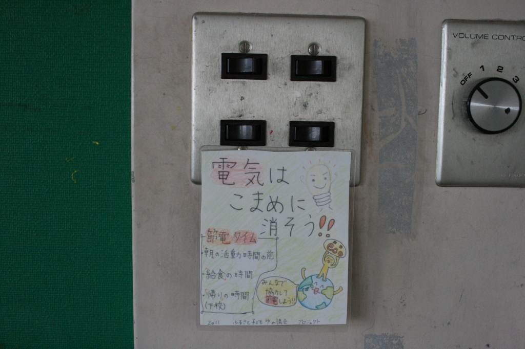 児童会担当の先生が、子供たちのアイディアを生かし、節電を進めるために活動してくれました。 学校内のすべてのスイッチに付けました。 昔々の話です。 あの子供たちも、お母さん、お父さんになったかも、です。 |