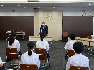 本日、生徒会執行部8名は、松島町役場にて、夫婦町である秋田県にかほ市の中学生とオンラインで交流を図っています。リーダーとしての資質・能力とされる、企画運営能力やコミュニケーション能力を高めています。