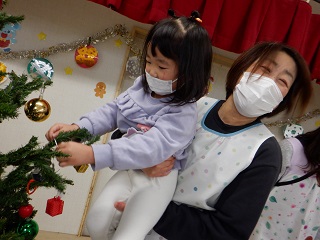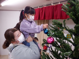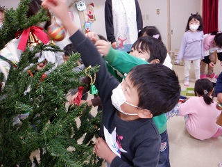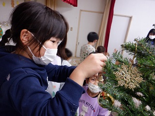 今日は朝にクリスマスツリーの飾り付けからスタート