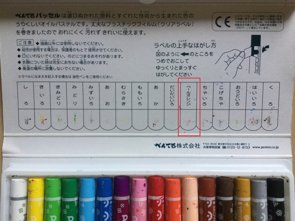 下の写真はクレパスのセットですが、昔あった肌色は今は、ペールオレンジ という名前に変わりました。 肌色というのは、日本人だけに通じる色で、世界では、いろいろな肌の人がいるということで、しばらく前から変更になっています。 色鉛筆もそうです。 気づいた方はいたでしょうか?