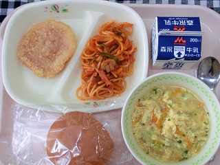| 今日の献立 丸パン、ハムカツ、松島産トマトのナポリタン、たまごスープ 本日の地元食材は、トマト、玉ねぎ、キャベツです。 今日は、松島産の野菜がたっぷり入った献立でした。 ナポリタンは、生のトマトが入ってコクがありながらさっぱりとした後味で、たまごスープは、玉ねぎ、キャベツなどの野菜のだしがよく効き、また彩りも良く美味しい給食でした。 梅雨時の高温、多湿の日が続きますが、このような天気の時は、身体がだるくなかなか疲れがとれない感じがします。 また、学校・幼稚園が開始されて1ヶ月が経ち、そちらの疲れも溜まっているのではないでしょうか。 このような時期は、体調を崩しやすいので、睡眠をしっかり取って、次の日に疲れを残さないようにすることが大事ですね。 |