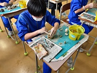この時間は粘土で「埴輪(はにわ)」作りに挑戦中です。