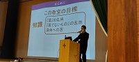 宮城県仙台保健福祉事務所 宮城県塩釜保健所 食品薬事班 横田洵一 氏をお招きし、「薬物乱用防止教室」を開催しました。薬の種類、正しい使用法、薬物の怖さについてお話しいただくとともに、将来においても善悪の判断がつけれる大人になってほしいという願いもお伝えいただきました。横田様、本日はご来校ありがとうございました。