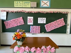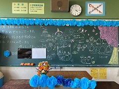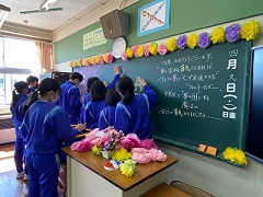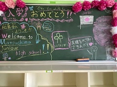入学式前,新入生の教室に2年生が,メッセージと飾り付けを行いました。「ようこそ松島中学校へ」「友達を大切に!」等々,先輩として後輩へ思いを伝えました。新入生のみなさん。優しく頼もしい先輩方が待ってますよ。一緒に楽しい学校生活を送りましょう。