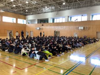 朝会では、小学生の時に被災した先生から当時のことや防災についての話を聞かせてもらいました。