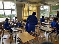 3年生のこのクラスでは、歯科検診を終えた生徒たちが、