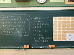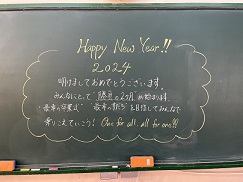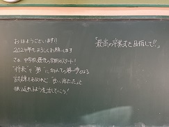 始業式の朝、担任からのメッセージが黒板に記されていました。3年生の登校日は残すとこ50日。本日は、私立推薦入試にチャレンジしています。