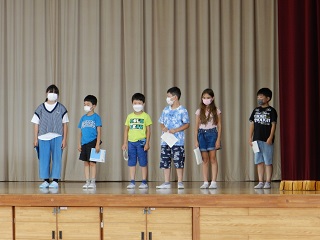 3時間目,体育館で終業式を行いました。2,4,6年生の代表の友達が