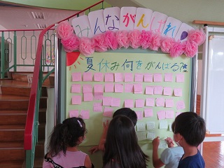 玄関には,夏休みに何をがんばるか,