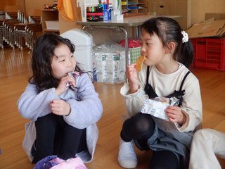園に戻ってから、みんなで1つ選んでお菓子を食べました