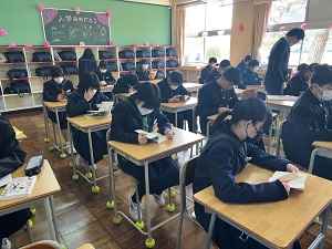みんな早めに自分の席に着き、「朝読書」をしていました。