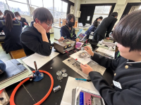 2年生、理科と保健体育の授業の様子です。理科では、「電流による磁界の観察」の実験を協力して行いました。