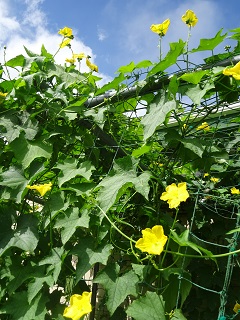 学校畑にあるヘチマ・・・花がたくさん咲いています