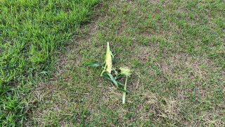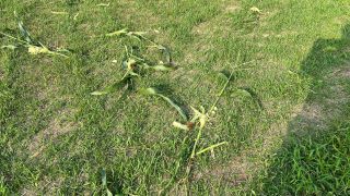 1日(月)、学校畑をのぞいてみたら、これまで作っていたトウモロコシが動物たちに食べられていました。