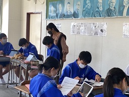 本日、5・6時間目に音楽、技術の研究授業(授業実践)を行いました。ICT機器を活用した授業内容と活発な話合い活動が行われました。