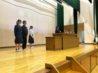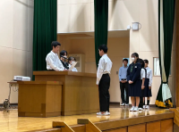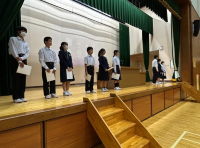 本日、生徒会引継ぎ式を行いました。校長先生から新生徒会長に任命状が渡され、その後新生徒会長から、新執行部員に委嘱状が渡されました。前執行部員からは、それぞれに思いのこもった挨拶がありました。引継ぎ式の最後には、新生徒会長から今後の抱負が話され、引継ぎ式は無事終了しました。