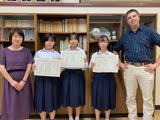 本日、令和5年度多賀城地区中学校英語暗唱・弁論大会が多賀城市市民活動サポートセンターで開催されました。本校から3名が参加し、優良賞を受賞しました。暑い夏休み中も一生懸命練習に励んでいました。3名の皆さん、本当にお疲れ様でした。