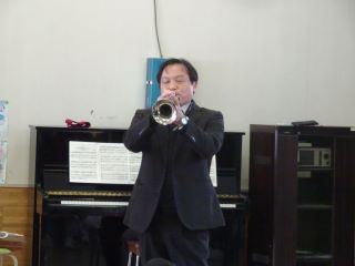 トランペットの音に子供たちは驚いていました。