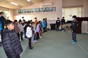 最初に、6年生の指揮で「児童会の歌」を歌いました。、