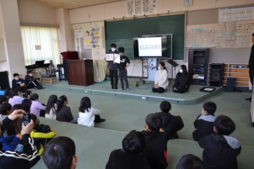 その後、図書委員会の活動をクイズを出しながら紹介したり、