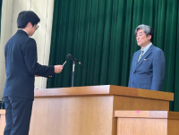 同窓会会長、郡山様から歓迎の言葉と記念品をいただき、新入会員代表があいさつを行い3年生は晴れて同窓会に入会いたしました。松島中同窓生の皆様、これからどうぞよろしくお願いいたします。