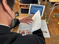 教科書(Unit6 " Beyond Borders ")の英文をペアで読んでいました。