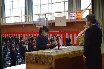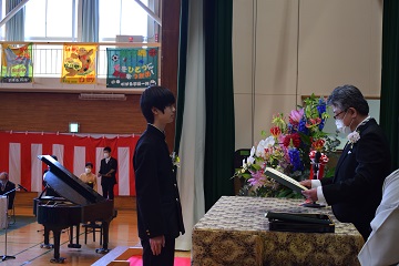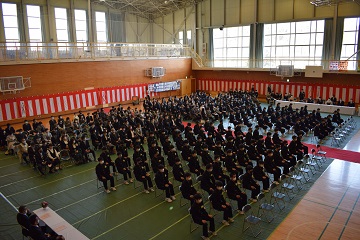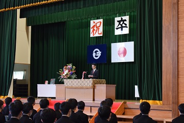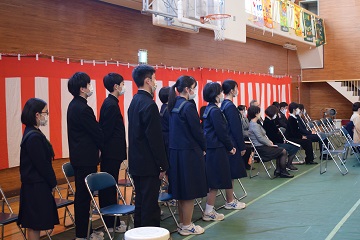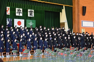 3月12日(土)「第75回卒業証書授与式」を行いました。新型コロナウイルスの感染拡大を防ぐため、昨年度同様に式への出席者を卒業生の保護者2名に制限させて頂き、在校生も最小限の人数で、内容を変更して実施しました。厳粛な雰囲気の中で96名の卒業生が立派に巣立っていきました。保護者の皆様、ご卒業おめでとうございます。