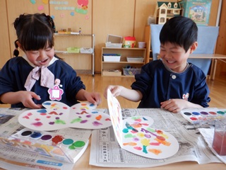 初めての絵の具を使って嬉しそう