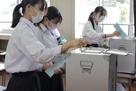 本日5、6校時に生徒会役員改選選挙立会演説及び投票を行いました。