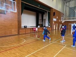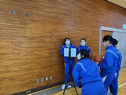 バスケットボールの授業では、自分のシュートフォームを動画でチェックすることで、効果的なシューティングの習得を目指しています。個人で確認するだけでなく、お互いに学び合う相乗効果が生まれています。
