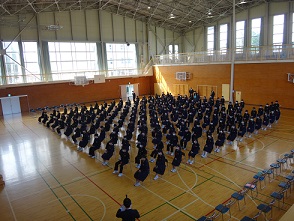 浅野校長の式辞に生徒は真剣な眼差しで聞き入りました。