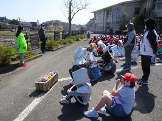 1年生は初めての避難訓練でしたが、6年生が手をつ
