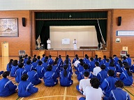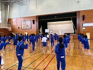 本校では、保健体育科武道の領域にて、少林寺拳法を学んでいます。先週木曜日から開始されており、地域の方々が講師として本校教諭と共に指導にあたっています。