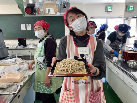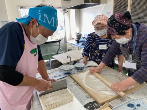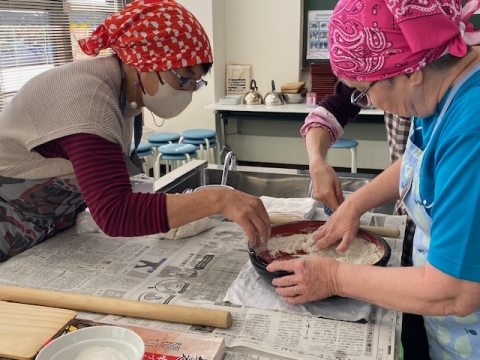 11月15日(土)に、『そば打ち体験教室』を交流館で行いました。今回、東部地域交流センター(北小泉下竹谷地区)で活躍しているいちょうの会のみなさんに講師として出張いただき、参加者に指導いただきました。